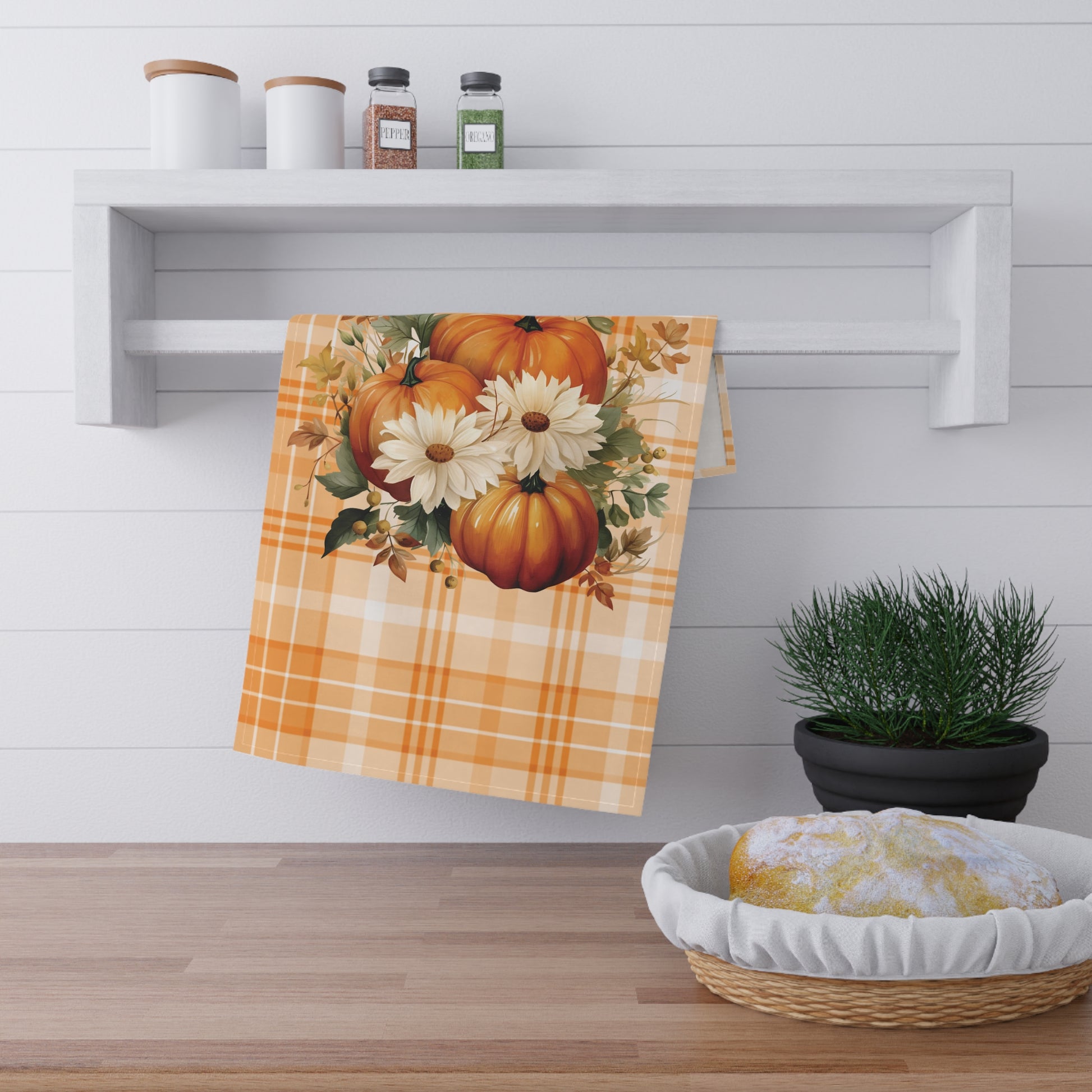 Give an extra boost to your Fall Decor in your kitchen with this vibrant Cottage Fall Plaid Pumpkin Tea Towel! With a stunning one-sided print for practical everyday use in your kitchen!