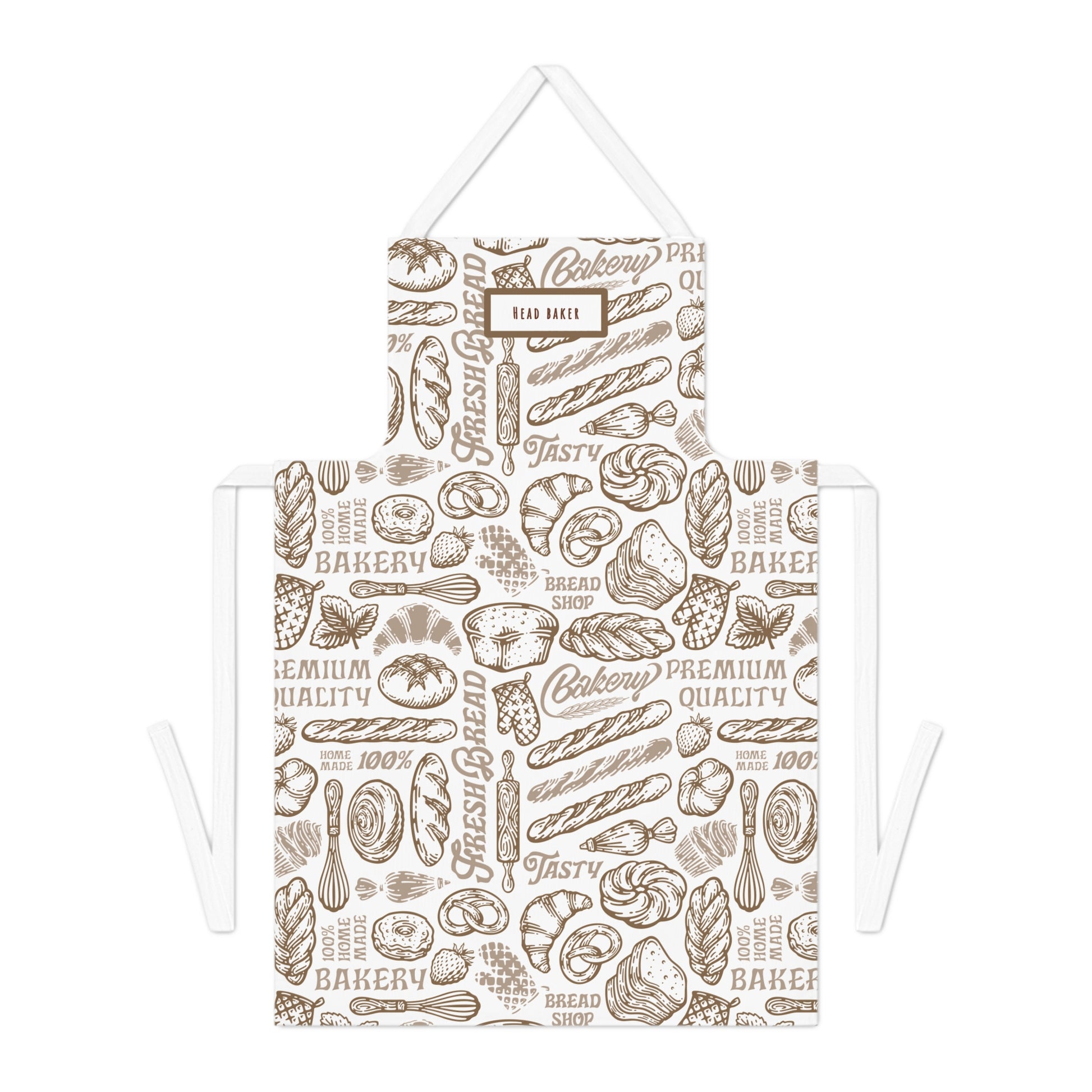 Get ready to Cook with this Rustic "Head Baker" Bread patterned, Adult Kitchen Apron! With full coverage and a pattern that expresses your love for baking, you can cook in style! Bake your sourdough, bread, english muffins or a dinner beef wellington! This is a great gift for the baking/ cooking enthusiast in your life!