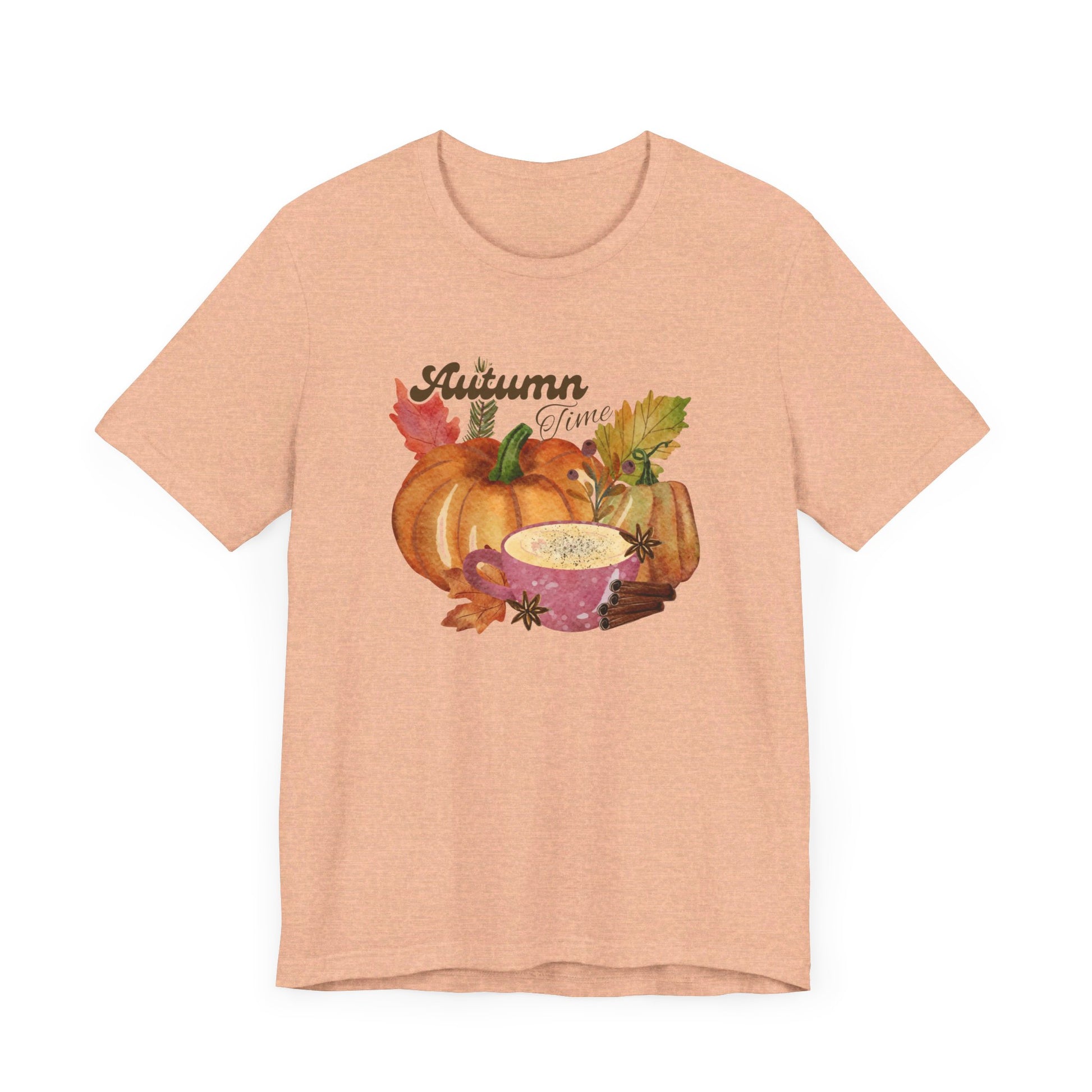 Heather Peach Autumn Time Fall T-Shirt, Pumpkins Leaves Shirt, Fall Coffee Shirt, Fall Lover Gift