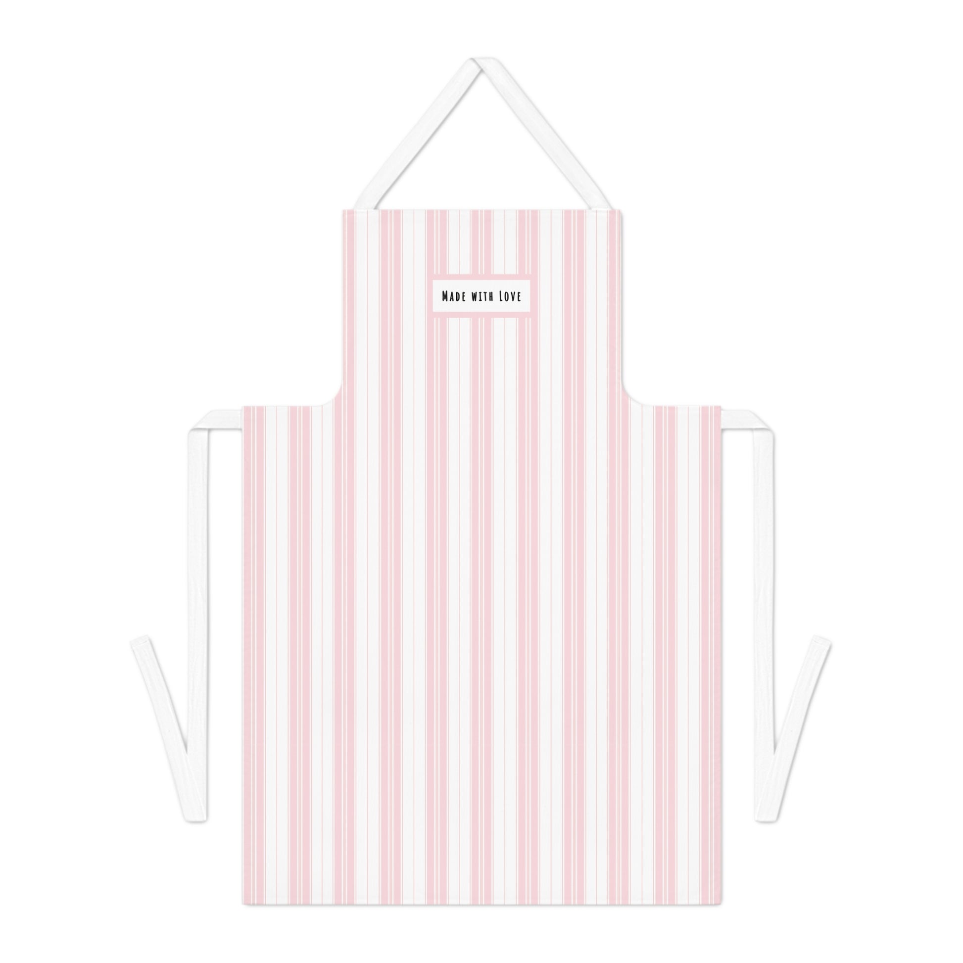 Cook with our "Made with Love" pink, pinstriped, Adult Kitchen Apron! With full coverage, you can cook in style! Make all of their favorites with this fun, pinstriped apron! This is a great gift for the baking/ cooking enthusiast in your life or a perfect Mother's day surprise!