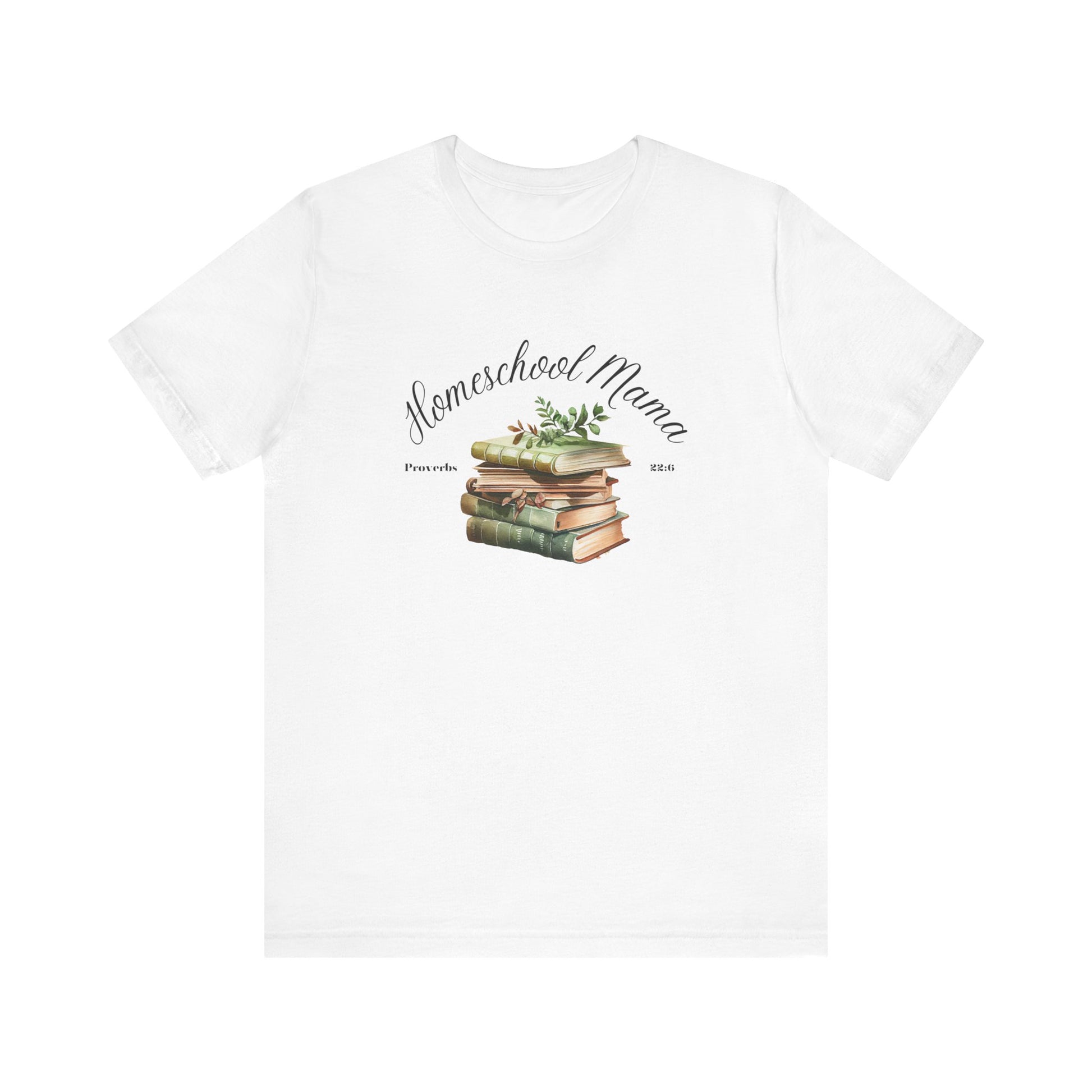 White Homeschool Mama T-Shirt, Book Lover Shirt, Homeschool Mom Gift, Bible Verse Tee